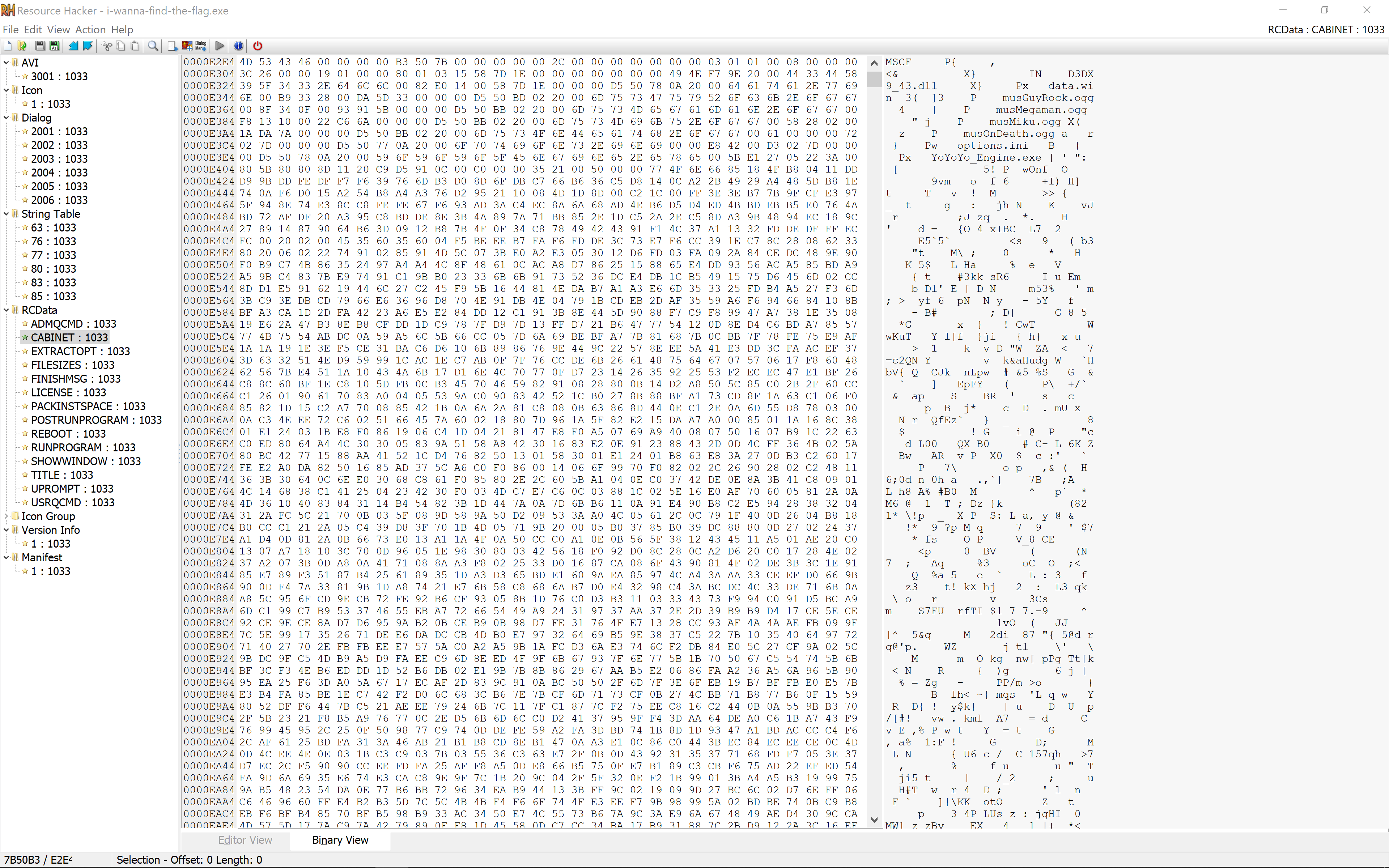 Since this challenge was a game, I figured that analyzing it in Resource Hacker might provide some useful insight.