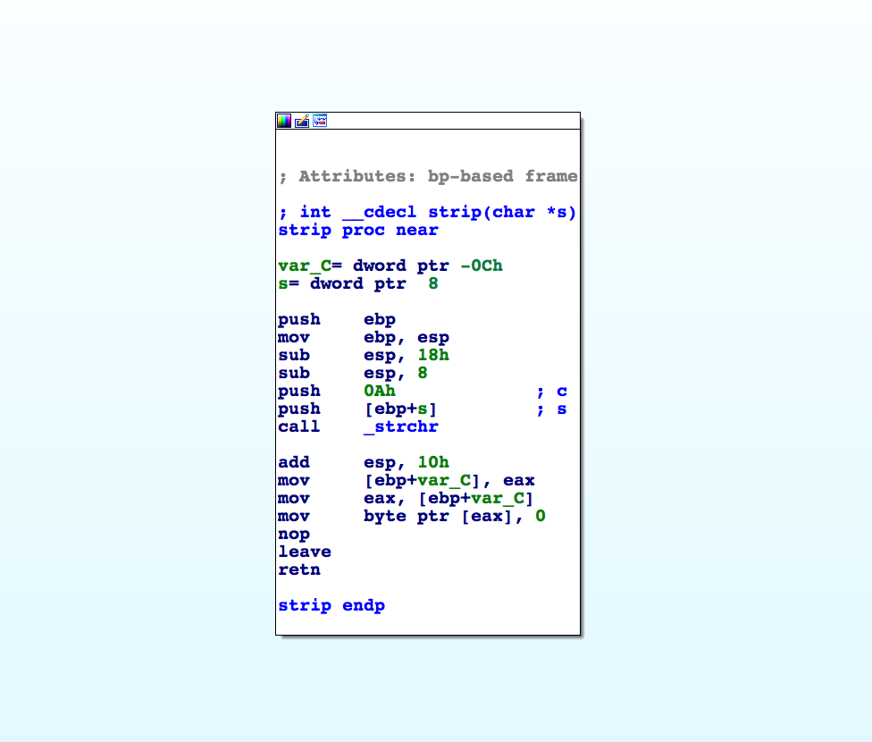 is simply a newline stripping function, since it’s just replacing the newline character with a null byte.