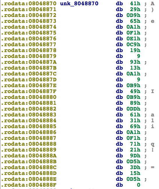 encrypted = '\x41\x29\xd9\x65\xa1\xf1\xe1\xc9\x19\x09\x93\x13\xa1\x09\xb9\x49\xb9\x89\xdd\x61\x31\x69\xa1\xf1\x71\x21\x9d\xd5\x3d\x15\xd5'